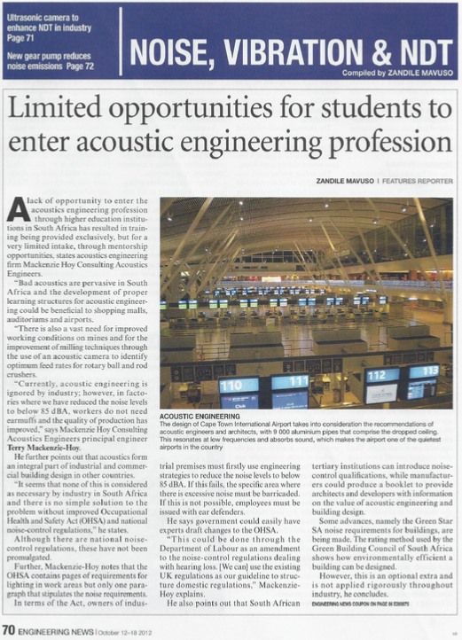 Alack of opportunity to enter the acoustics engineering profession through higher education institutions in South Africa has resulted in training being provided … |